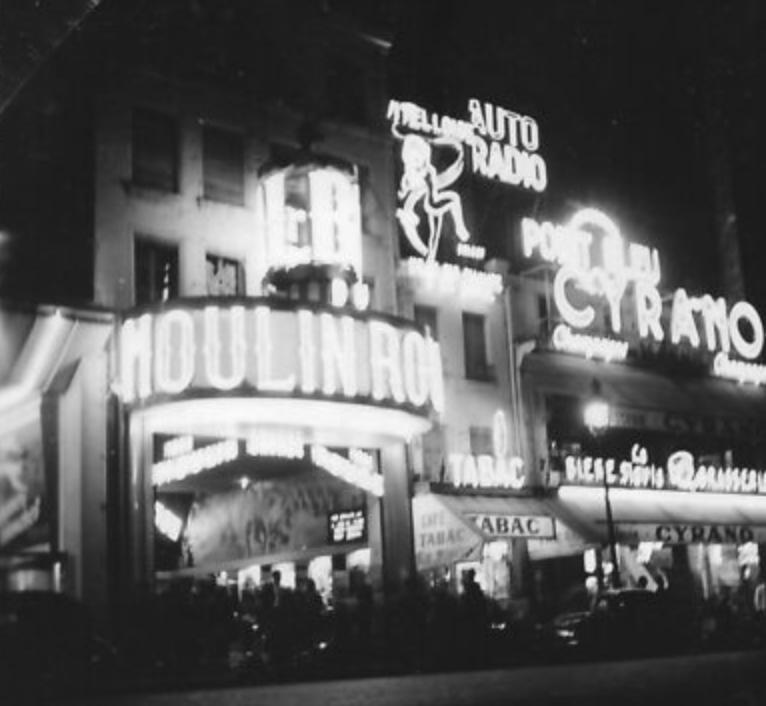 Wir gehen aber gleich wieder weg und er bringt mich zum berühmten Montmartre-Quartier, gehen zum Place de Tertre mit seinen vielen Kunstmalern und Zeichnern und zum Vergnügungsviertel am Place Pigalle. Die Fassade vom berühmten Revue-Theater „Moulin Rouge“ ist beleuchtet mit vielen Leuchtreklamen und ich mache, sozusagen als Beweis meiner Anwesenheit, noch ein Foto, obwohl es bereits Nacht ist. Es ist kurz vor 2 Uhr nachts, bis wir wieder in seiner Wohnung sind und müde und zufrieden schlafe ich sofort ein.