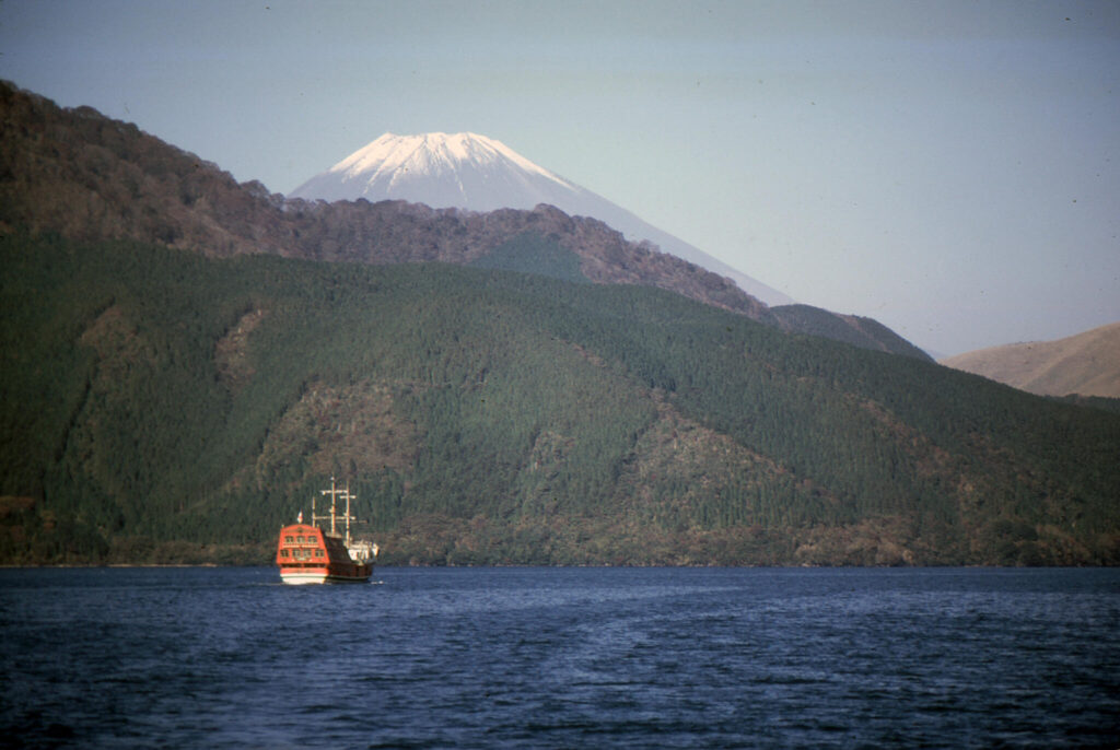 Eine Bootsfahrt auf dem Ashi-See ist unser Ziel, ein Kratersee nach einem Vulkanausbruch vor rund 3000 Jahren. Wir haben grosses Glück, die Luft im November ist so frisch und sauber und die Szenerie atemberaubend. Der Himmel ist wolkenlos und der Fuji-yama spiegelt sich im ruhigen Wasser. Ein Traum-Sujet für die Fotografen und stillen Beobachter.