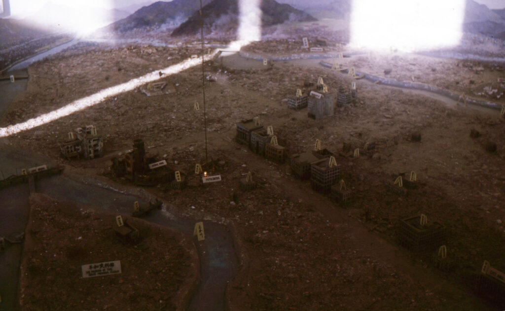 Ansicht der total zerstörten Stadt (Aufnahme durch eine Glasvitrine mit Lichteinfall, aber trotzdem ein Dokument)